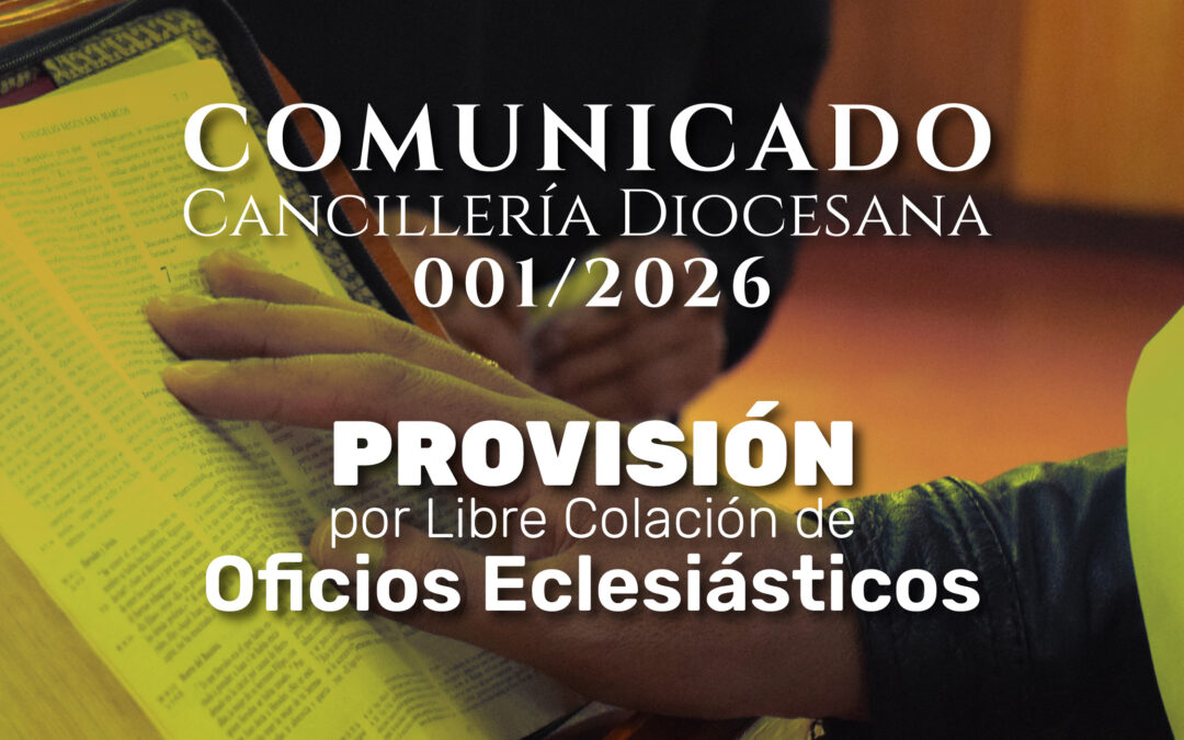 La cancillería Diocesana comunica que el señor Obispo EDGAR ARISTIZÁBAL QUINTERO provee por libre colación los siguientes oficios eclesiásticos: